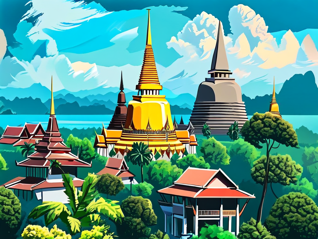 6. 整体配色方案要体现泰国特色,使用蓝色、金色为主色调